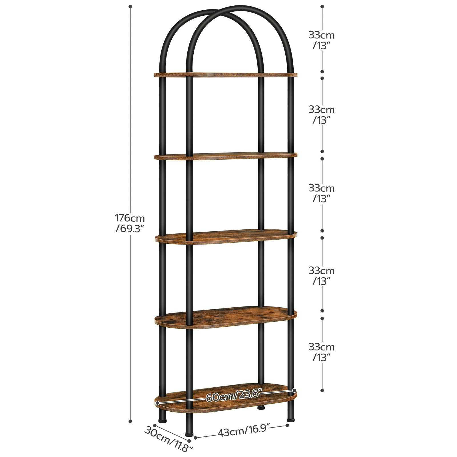 Easy Assembly: The 5-tier arched bookcase comes with a twist-and-lock design along with numbered components and a clearly illustrated manual. Simply follow the instructions, twist the tubes from top to bottom, and assembly is quickly done